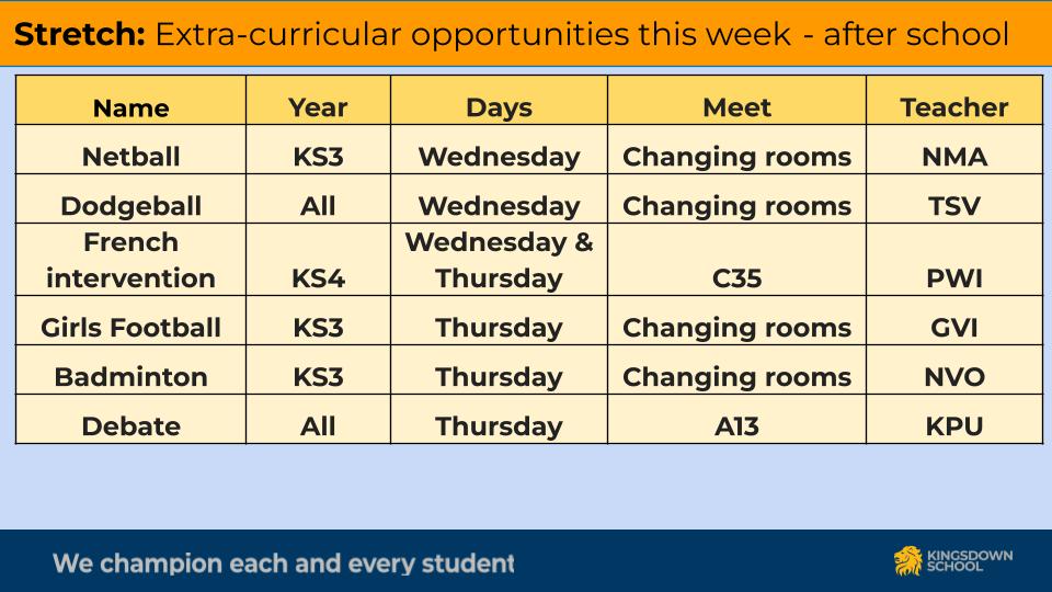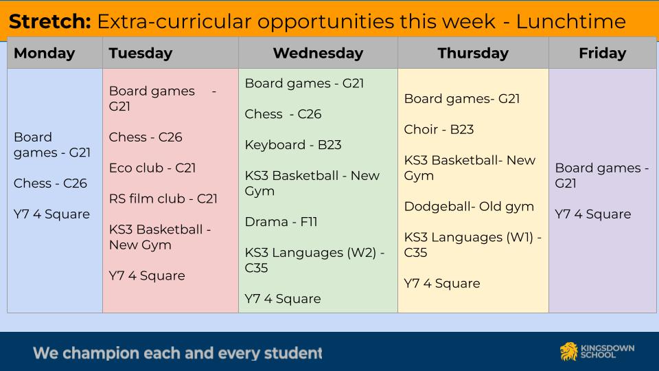 There are a number of enrichment clubs which run every lunchtime as well as afterschool, and offer our students a range of opportunities.