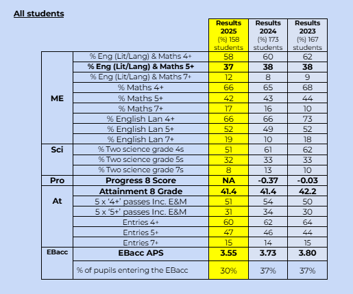 We are pleased that our English and Maths results are above the national average for standard and strong passes. We also saw an increase in the number of 7+ grades in English and Maths where our students also performed above the national average.