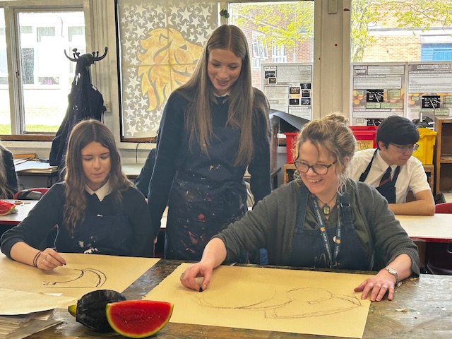 Year 10 GCSE Art students embracing abstraction in painting and drawing with visiting artist Laurie Plant.