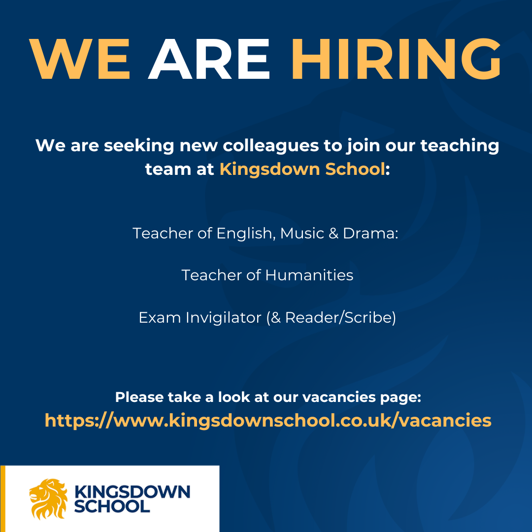 We are seeking new colleagues to join our amazing team at Kingsdown School!