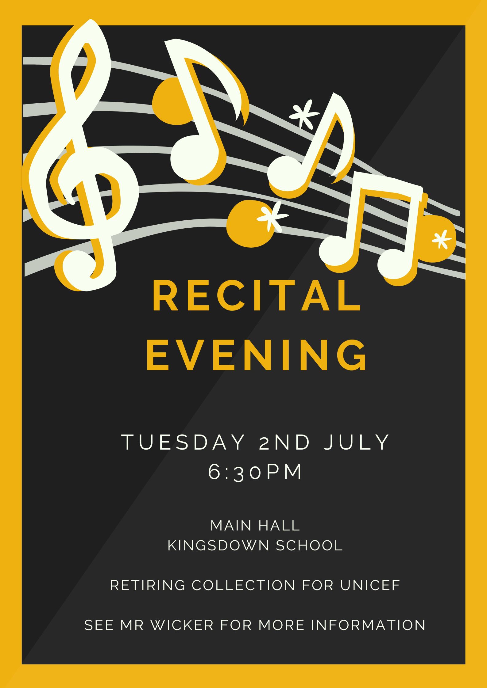 Recital Evening is on Tuesday 18th March at 6:30pm.