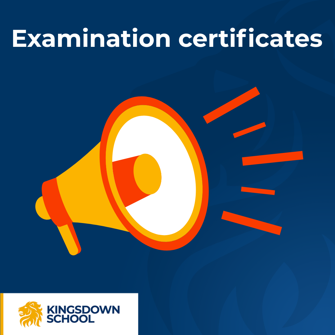 We are encouraging anyone who hasn’t collected their certificates from previous years to contact Mr G Coomber, Exams Manager on exams@kingsdownschool.co.uk and we will check to see if we do have your certificates here on file and can arrange to make them available for collection. Universities and other Further Education establishments quite often want to see the actual certificates to enable enrolment. If in the future you do need replacement certificates you will have to apply directly to the exam boards themselves and they charge approximately £40 per certificate.